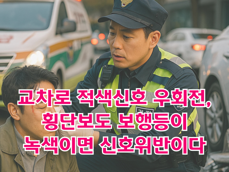 교차로 적색신호 우회전, 횡단보도 보행등이 녹색이면 신호위반이다