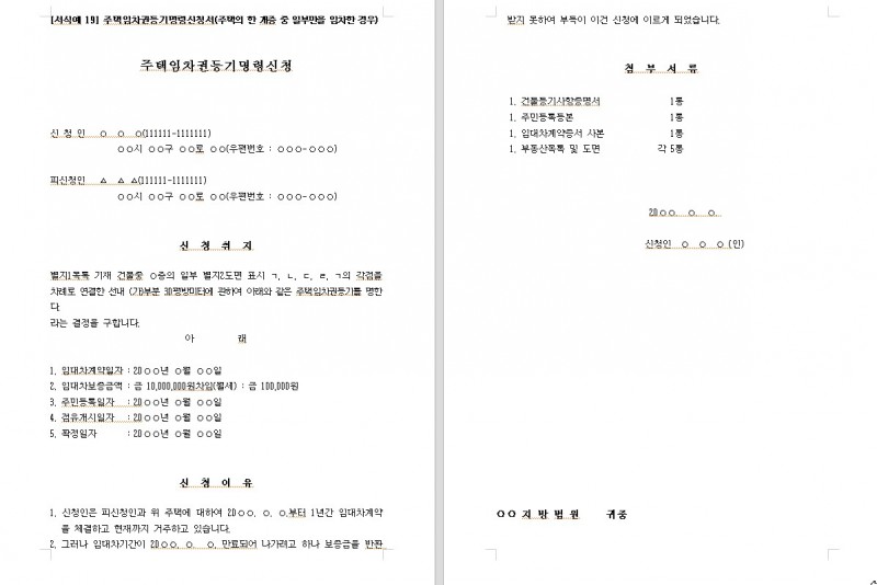 주택임차권등기명령신청서 무료법원양식 서식